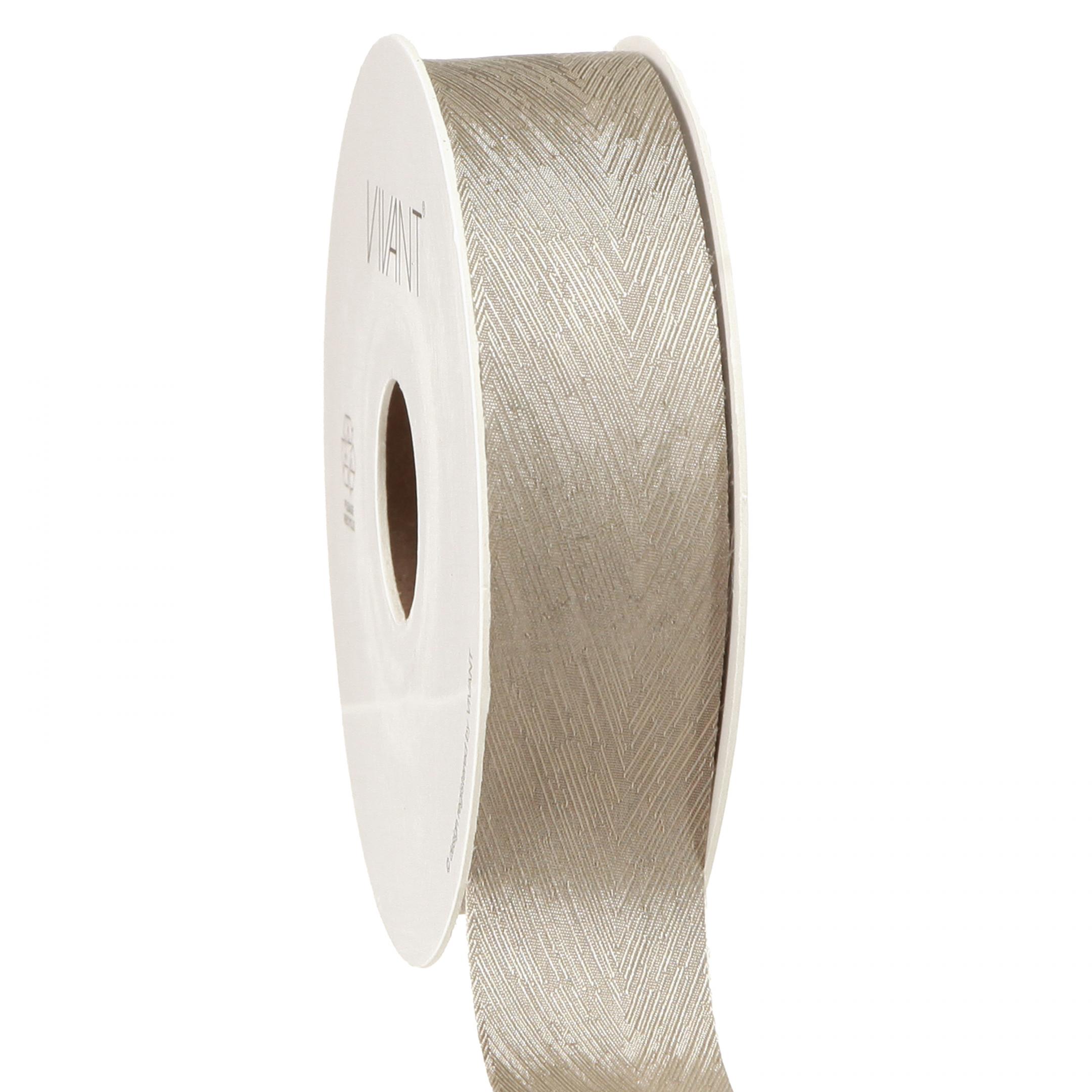 Elegant silk ribbon with feather print in silver – perfect for festive decorations Width 25mm Length 15m