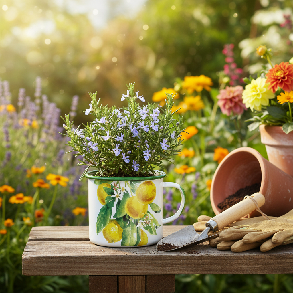 Plant or sow the plants you want in the enamel decorative cup and then effectively place the planter on a window sill as a flower decoration or use the metal cup as a handsome table decoration. The small mug with a handle also looks great as a garden decoration and can be placed decoratively on a garden wall, a tree stump or a landing! - Or you can use the metal cup as a herb pot as a small gift for the next invitation.