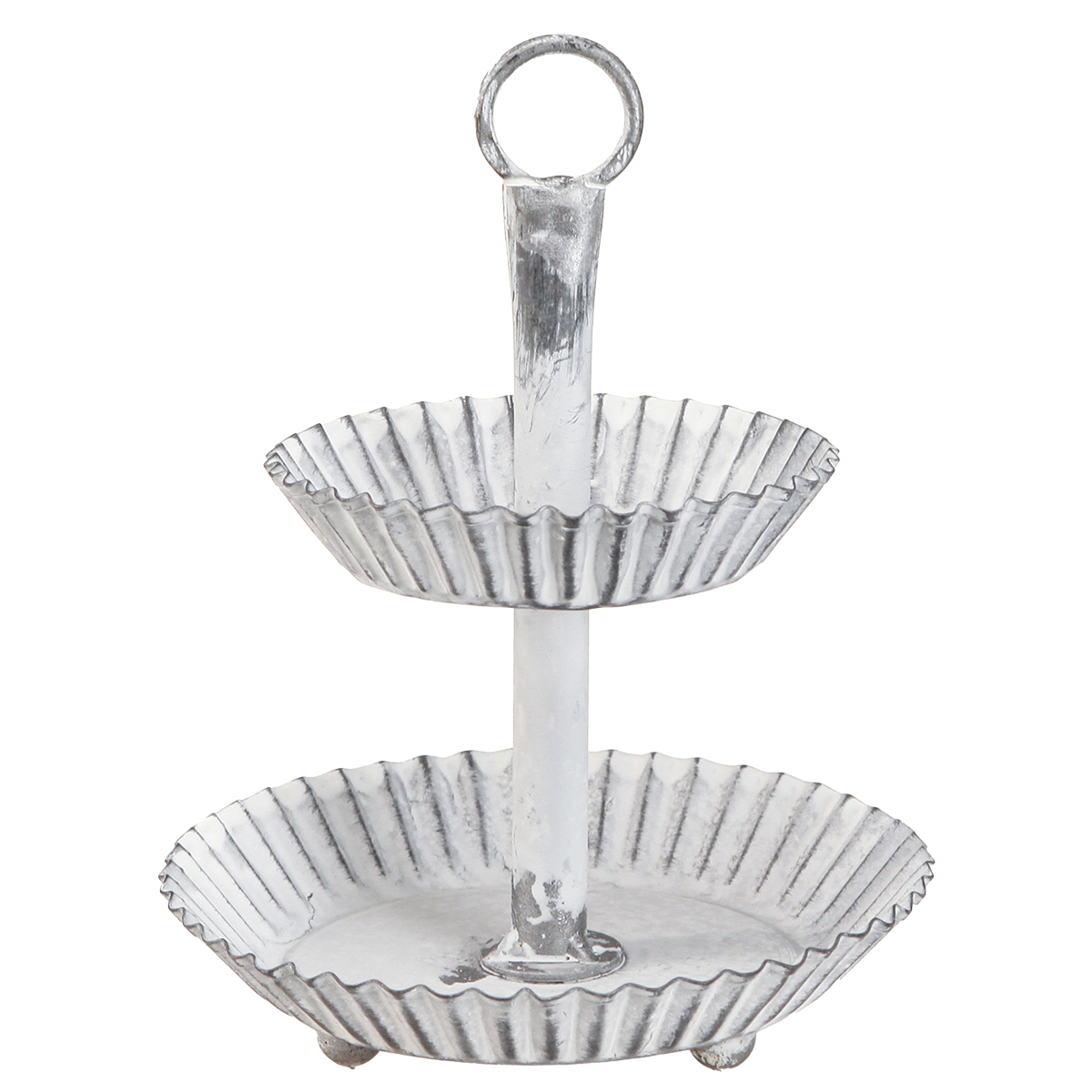 Etagere Shabby Chic Metal White 2-tier Ø16.5cm