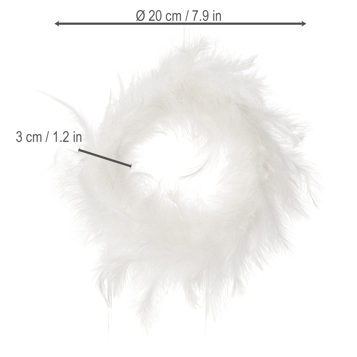 The feather wreath is particularly appealing due to its versatility. At a wedding, for example, it becomes a real eye-catcher: as a decoration for the wedding table to underscore a romantic atmosphere, or as a delicate accent in a floral table setting, perhaps combined with white roses or eucalyptus. It also offers creative possibilities for Easter decorations – whether placed as a minimalist Easter nest on a table arrangement or on the door as a welcoming greeting. Thanks to its compact dimensions of 20 cm, it fits into both small and large rooms without appearing cluttered. Those who prefer a natural and simple style can combine this decorative wreath with rustic elements such as jute or chic velvet ribbon to highlight the soft feathers. A particularly charming feature: the monochrome white harmonizes with almost any color, be it a romantic pink, an elegant gold, or fresh green.