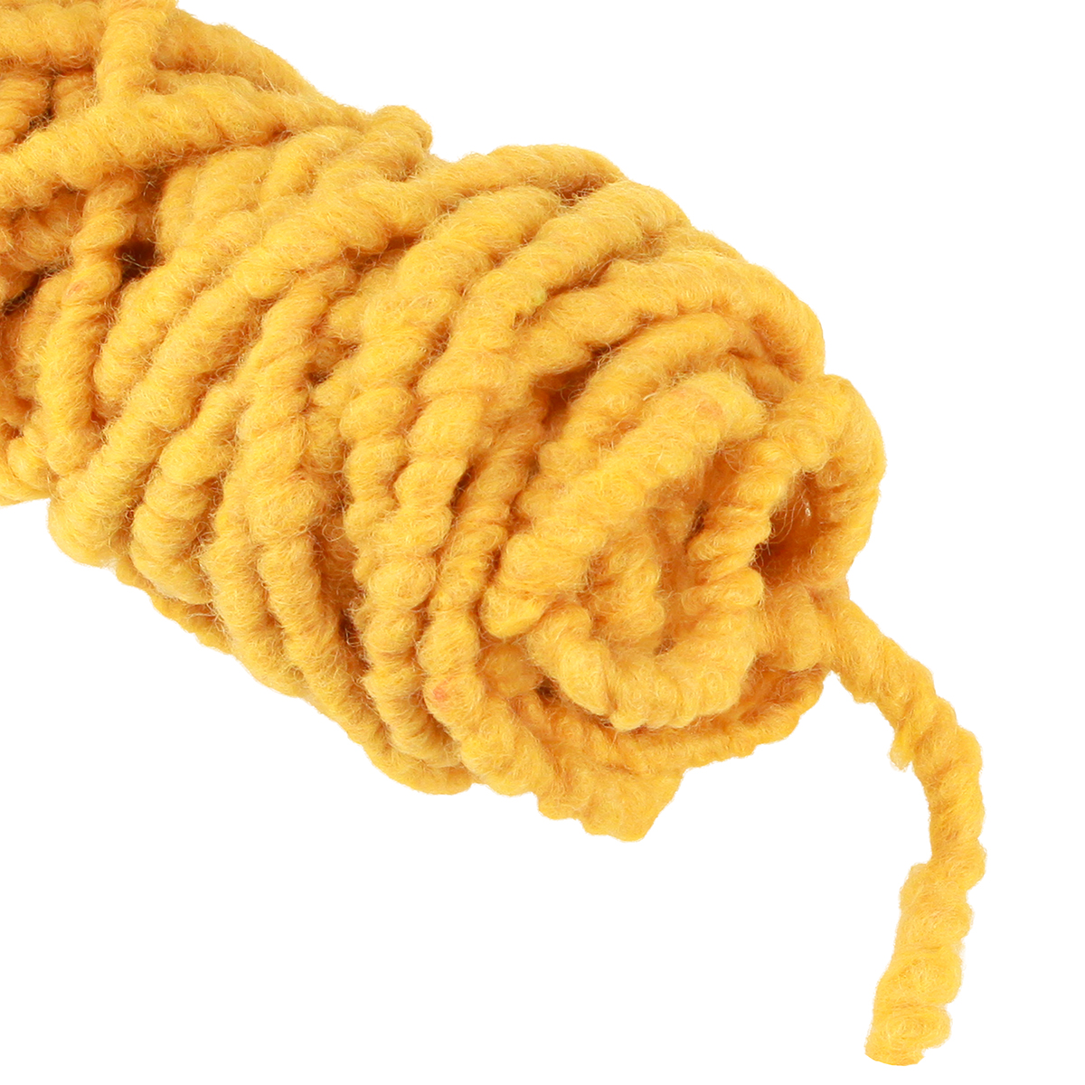 The yolk yellow felt cord "Flausch Mirabell" consists of 42% jute and 58% sheep's wool. It will be delivered to you with a thickness of approximately 10 millimeters and a length of approximately 25 meters in a plastic film.