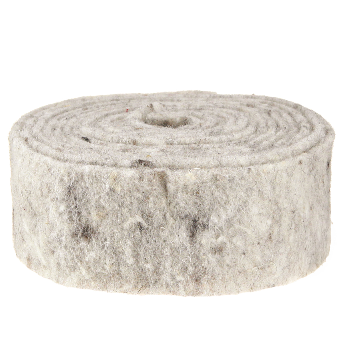 The gray felt tape is about 5 meters long and about 7.5 centimeters wide. Since it has been rolled up to a handy size, it can be easily stored in a larger drawer, in a closet or in the sewing basket.