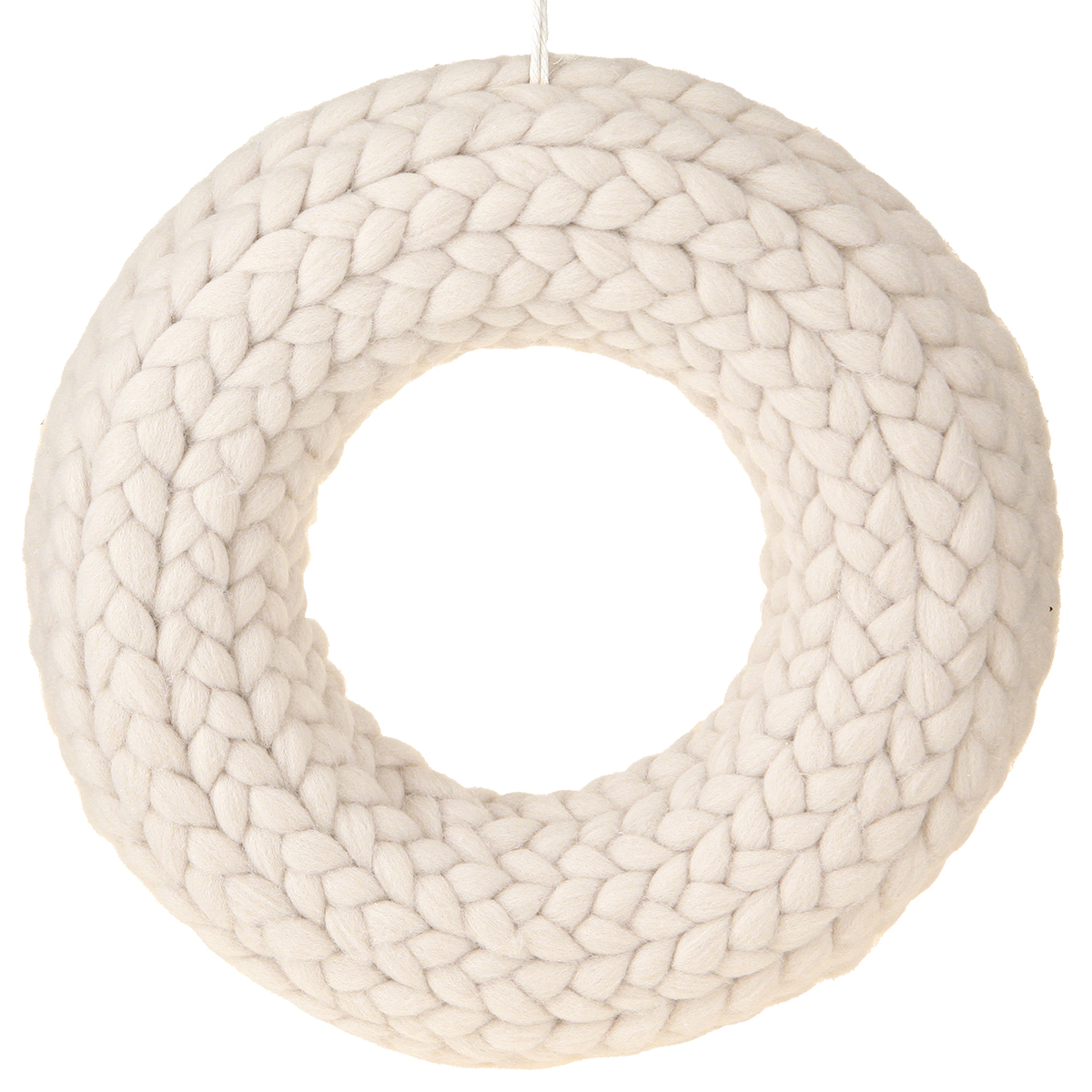 Felt wool decorative wreath for hanging in beige Ø30cm H4cm