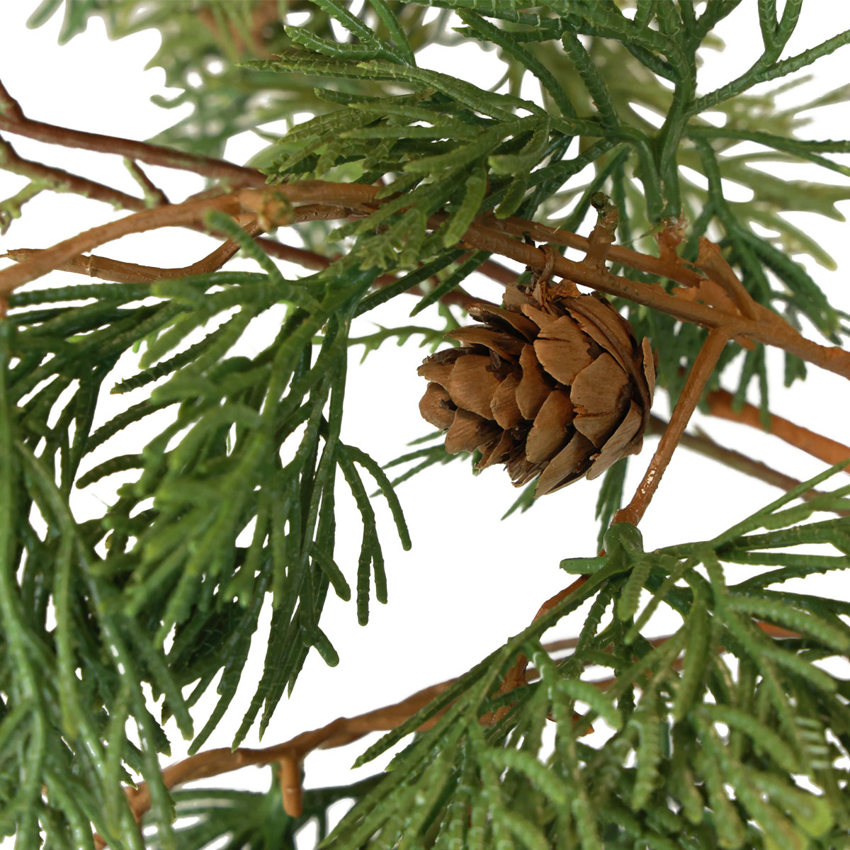 This artificial plant imitates a cedar branch and is also reminiscent of a larch. As an artificial fir branch, the artificial branch makes a wonderful addition to your winter and Christmas decorations.This cedar branch looks real right down to the branch. The needles are bushy on the many branches, in which small cones are occasionally located.