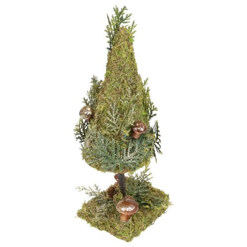 Fir tree decoration tree moss cones mushrooms green gold H35cm