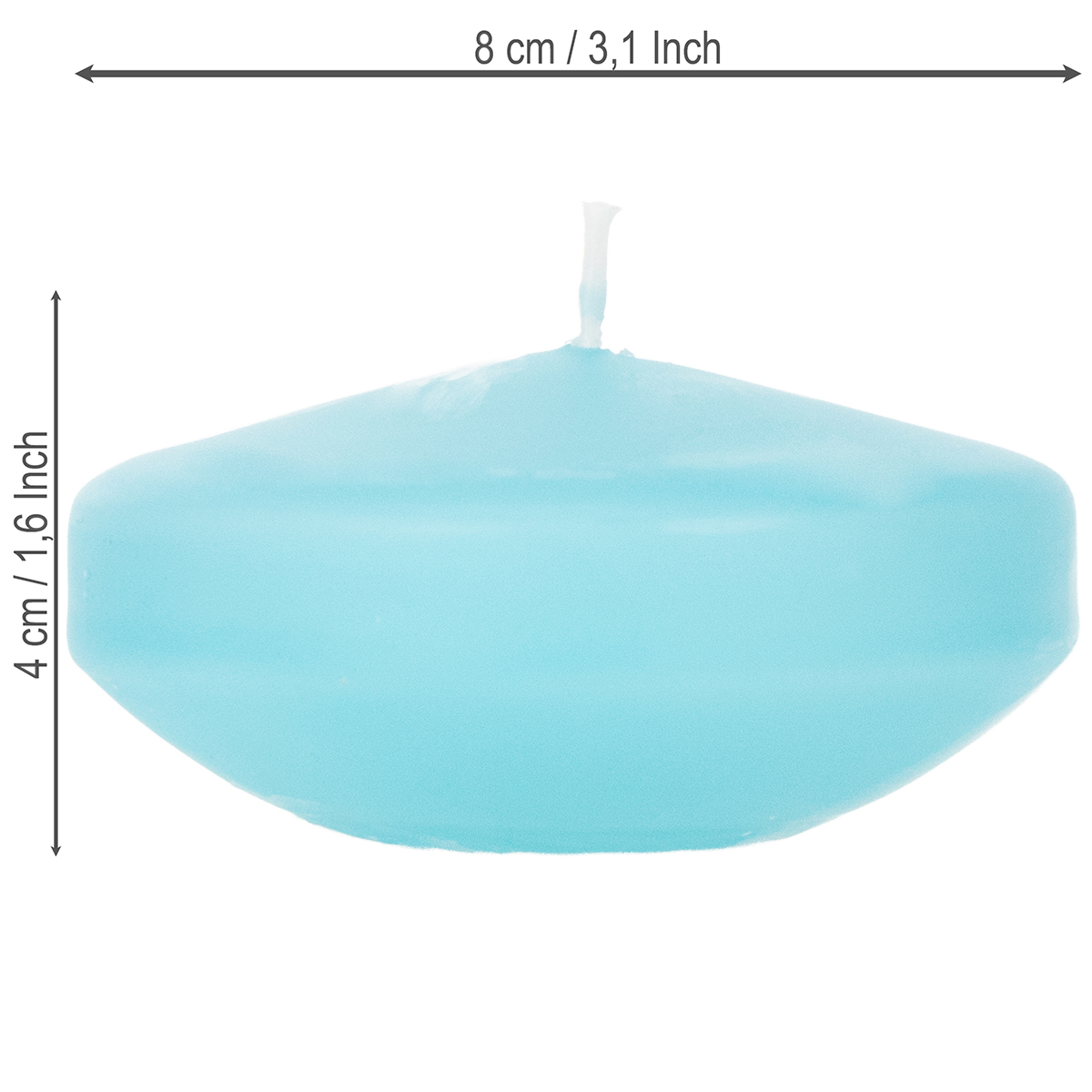 These round turquoise floating candles instantly create a magical atmosphere. Place them in decorative bowls on your tables or let them float in a pond, fountain, or large water feature – their flame reflects off the water, creating a magical play of light. They are the perfect choice for weddings, birthdays, romantic evenings outdoors, or simply as stylish table decorations.