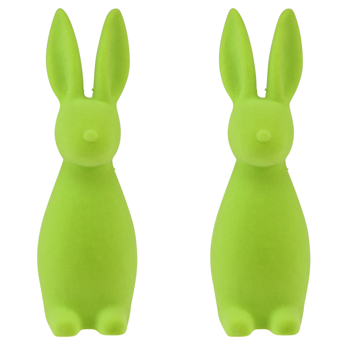 Flocked bunnies apple green – 2nd choice – Easter table decoration 8×10×29cm 2 pieces