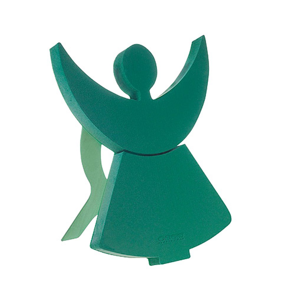 According to the manufacturer, the stand-up products of the mini series are wonderfully suitable for representative funeral floristry. So you can decorate the green angel as you like. Various real flowers and decorative elements such as pearls go wonderfully with this angel figure. The decorated floral foam angel also provides consolation as a table decoration at a funeral service. Please note that you should set up the floral foam product for a while after decorating. This allows water residues to run off. The angel lets himself be watered in a large vessel. To do this, simply let the plugging material float on the water surface.