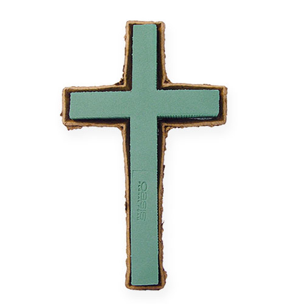 The OASIS® Biolit® cross consists of wet floral foam and recycled cardboard. It is offered in a set of 2. The dimensions are approximately 53 centimeters by 32 centimeters by 5.5 centimeters. The arrangement underlay consists of biodegradable materials. This makes it ideal as fine jewelry for a tomb.