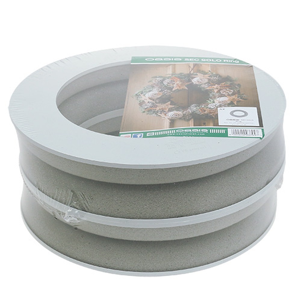 You receive the 4 floral foam rings from OASIS® in plastic packaging. Each of the wreaths is about 4 inches high. The width is about 5.2 centimeters. The total diameter of the wreath-shaped dry plug-in compound is around 30 centimeters. The inside diameter is approximately 20 centimeters.