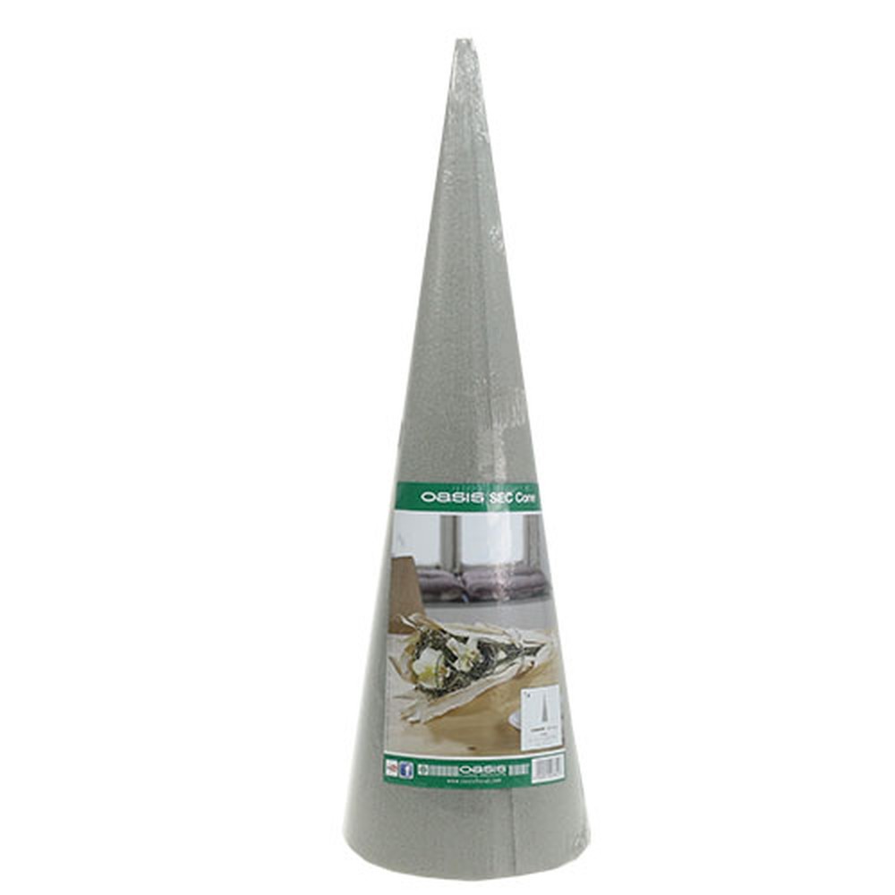The OASIS®-SEC cone made of floral foam is around 60 centimeters tall and measures around 18 centimeters in diameter at the widest point. You will receive it in plastic packaging.