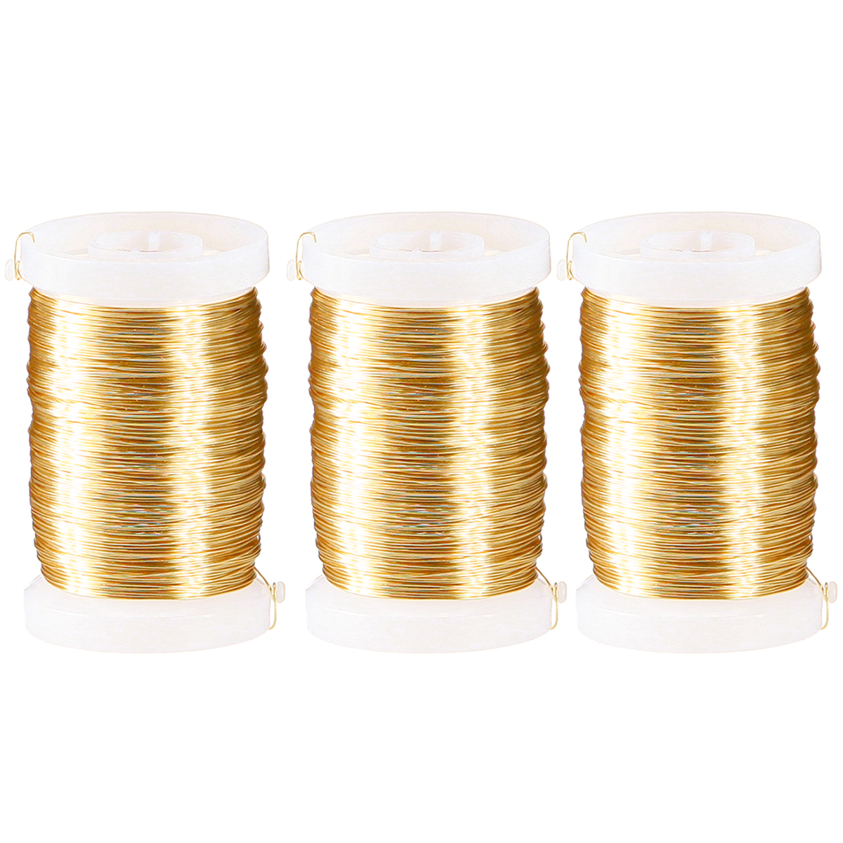 Florist wire, myrtle wire, decorative wire, gold, 0.30mm, 100g, 3 pieces, for crafting, jewelry making & decoration