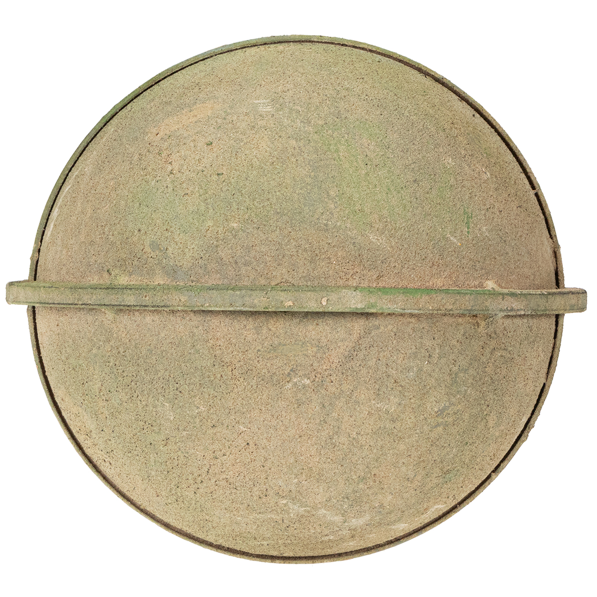 The metal hanging basket consists of a round bowl that is held by a circular arch that converges towards the top.