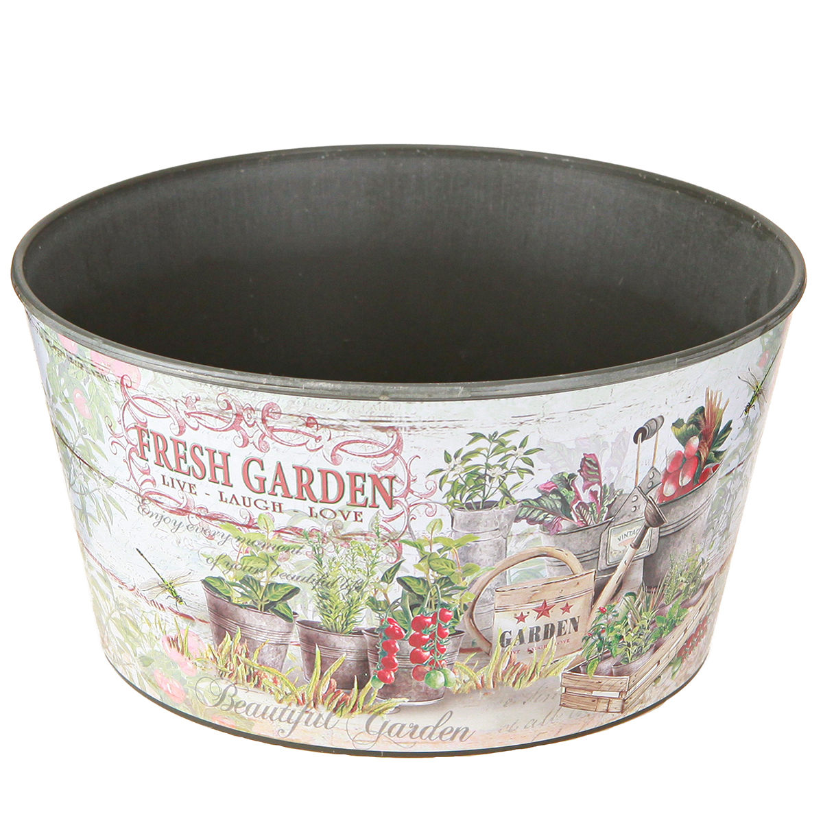 - Contains lettering "Fresh Garden – Live – Laugh – Love"