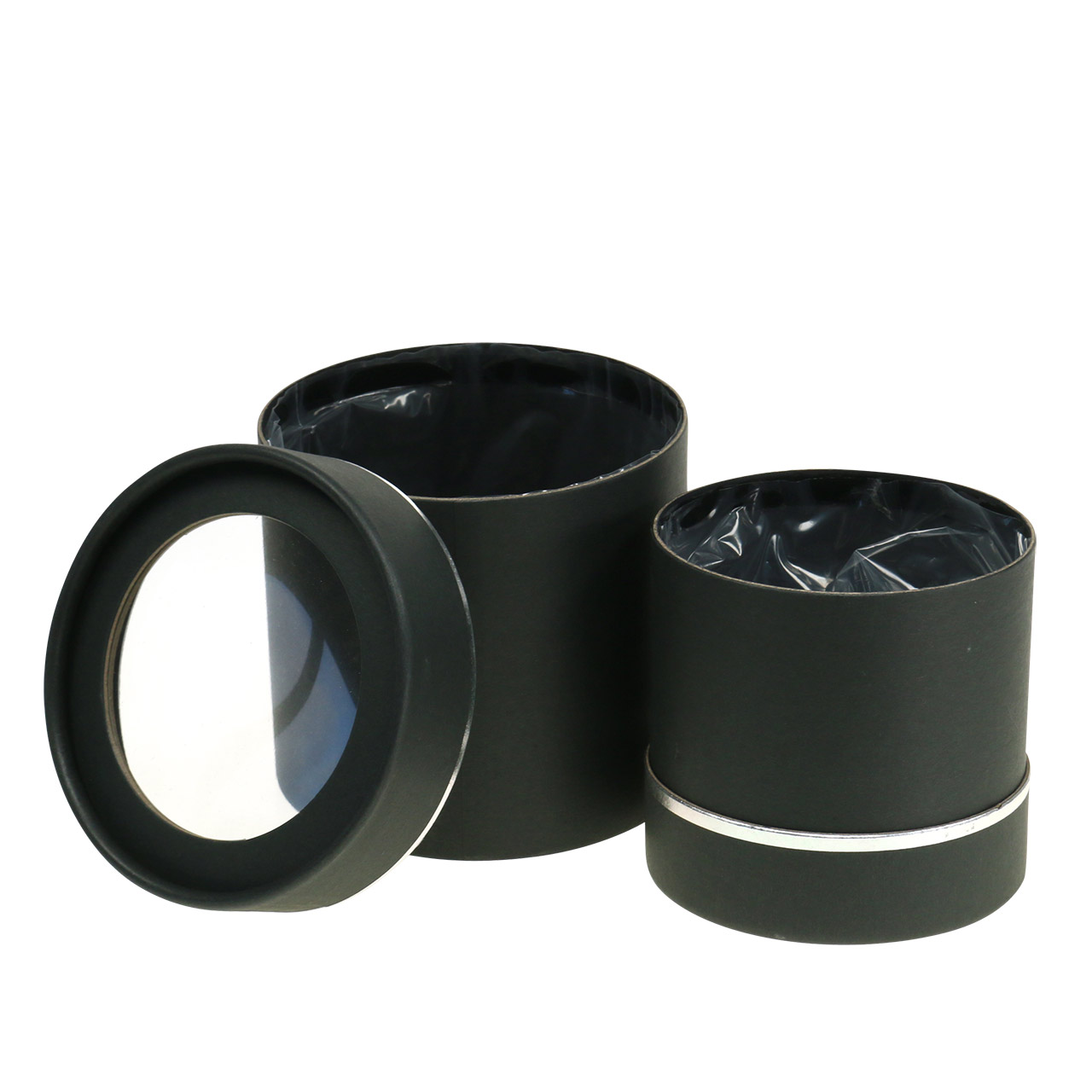 Flower box round cardboard black, silver Ø10/12cm set of 2