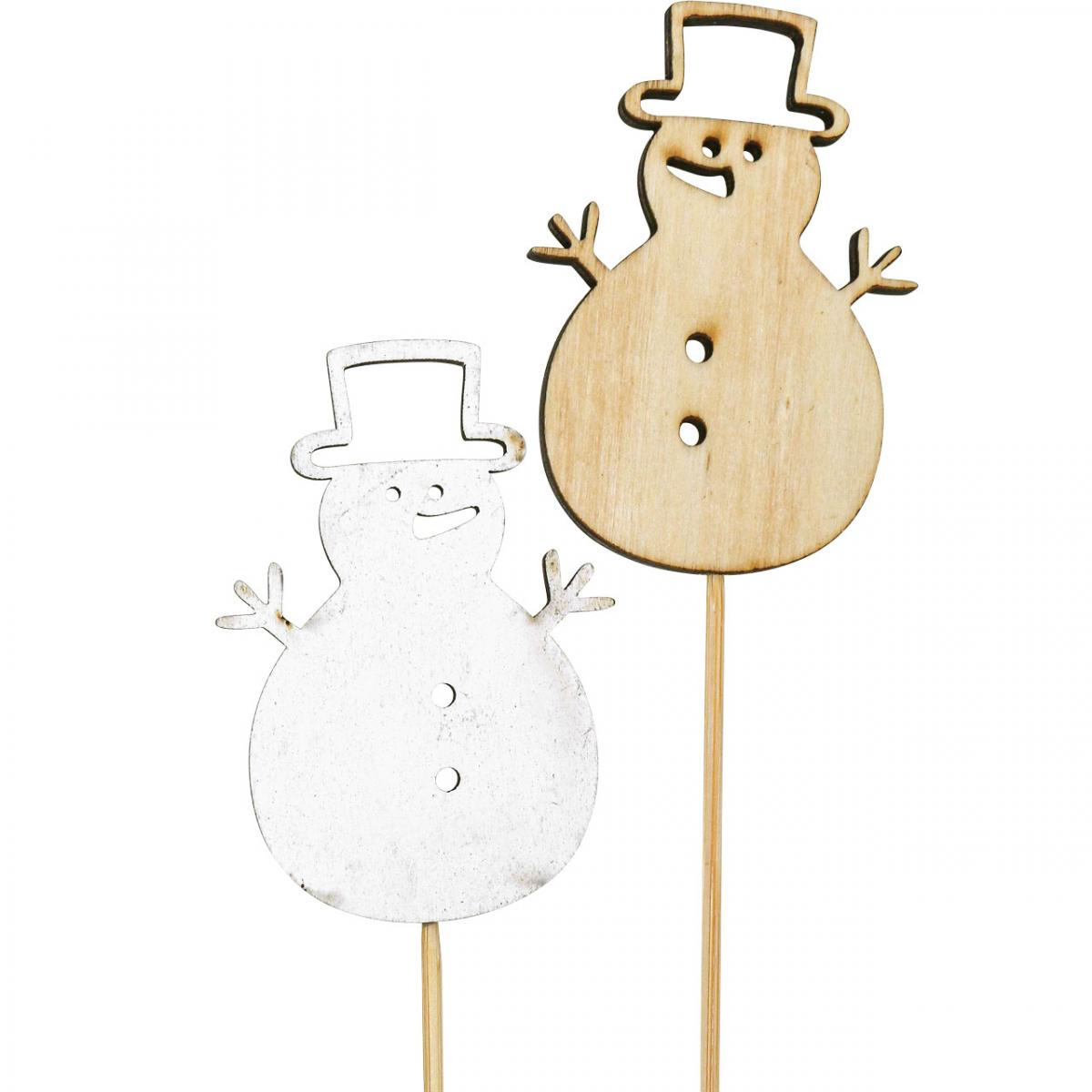 Flower plug Christmas decoration snowman wood 7cm 12pcs