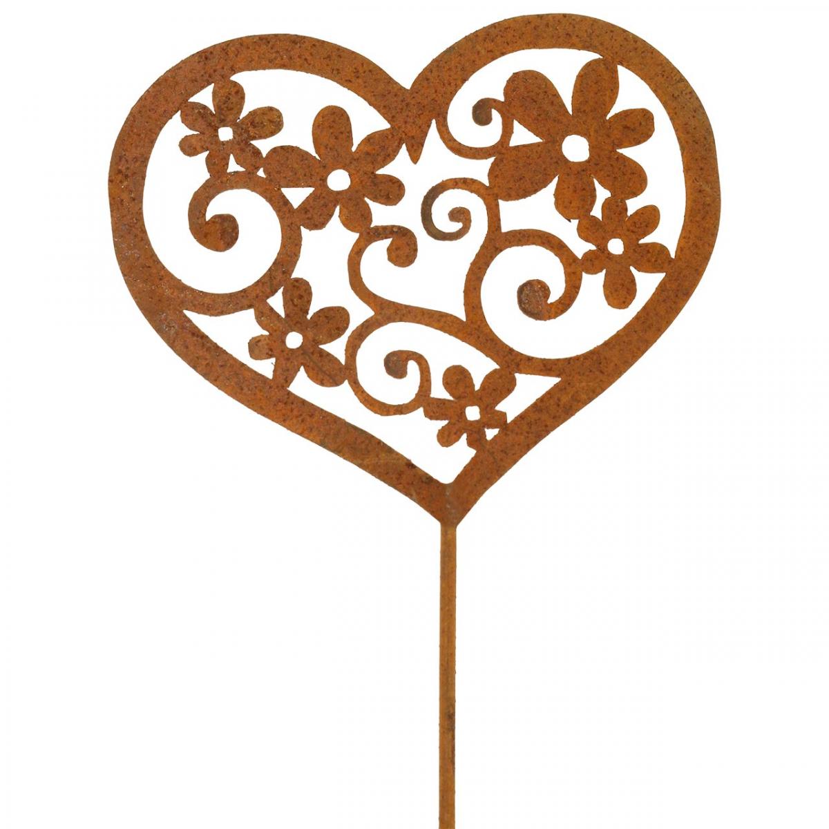 Set a romantic sign with the flower plug as a heart! The garden decoration with patina is characterized by a filigree floral pattern and warm brown tones. Anchor the metal decorative plug securely in the ground on the long stick.Year-round garden plugs in the rose bed, as a rust decoration in the houseplant or as a heartfelt gift idea, this rust decoration expresses your emotions. That's why the heart plug is of course perfect as a decoration for Valentine's Day or as a flower plug for Mother's Day. As a wedding decoration, the patina heart can be decorated on the long stick with cream-colored ribbons, fresh green and roses.