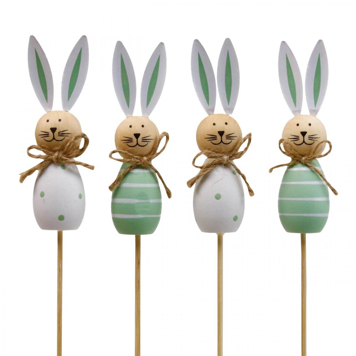Flower plug rabbit wood Easter bunny green/white L34cm 4pcs