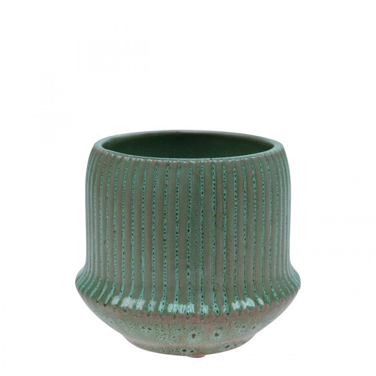 Product name: Flower pot ceramic planter grooves green Ø10cm H8.5cm