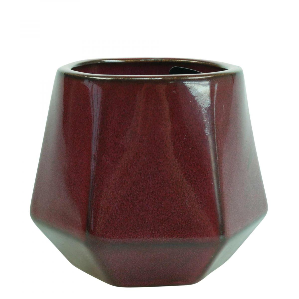 Flower Pot Ceramic Planter Red Hexagonal Ø10cm H9cm