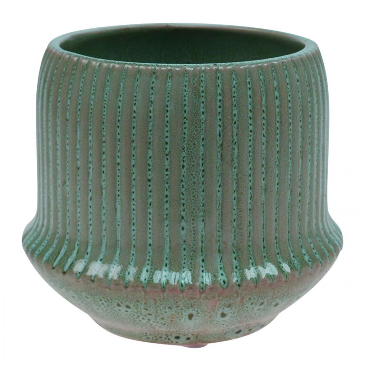 Flower pot ceramic planter with grooves light green Ø14.5cm H12.5cm