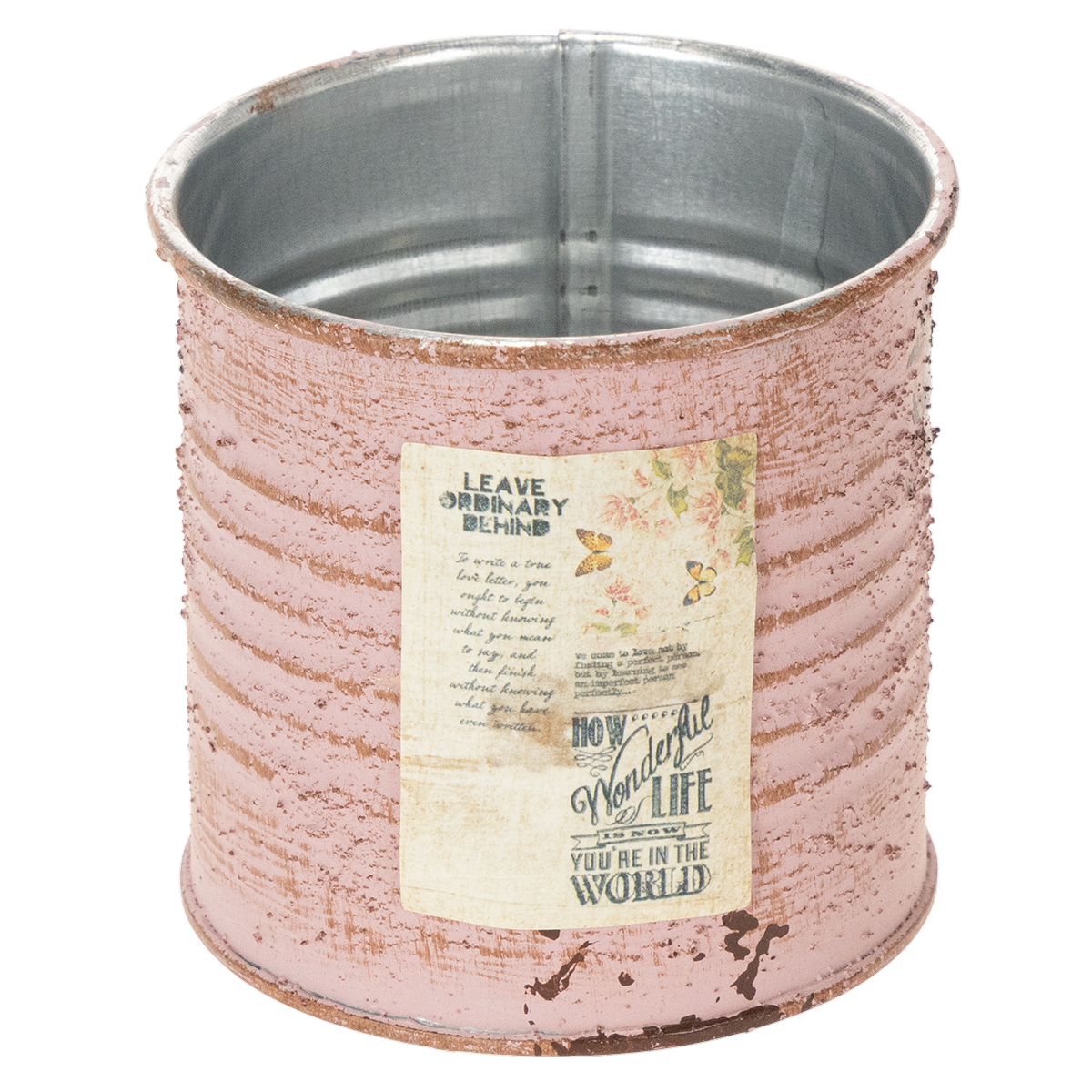 Flower pot decorative tin round antique rose metal planter Ø8cm H7.5cm