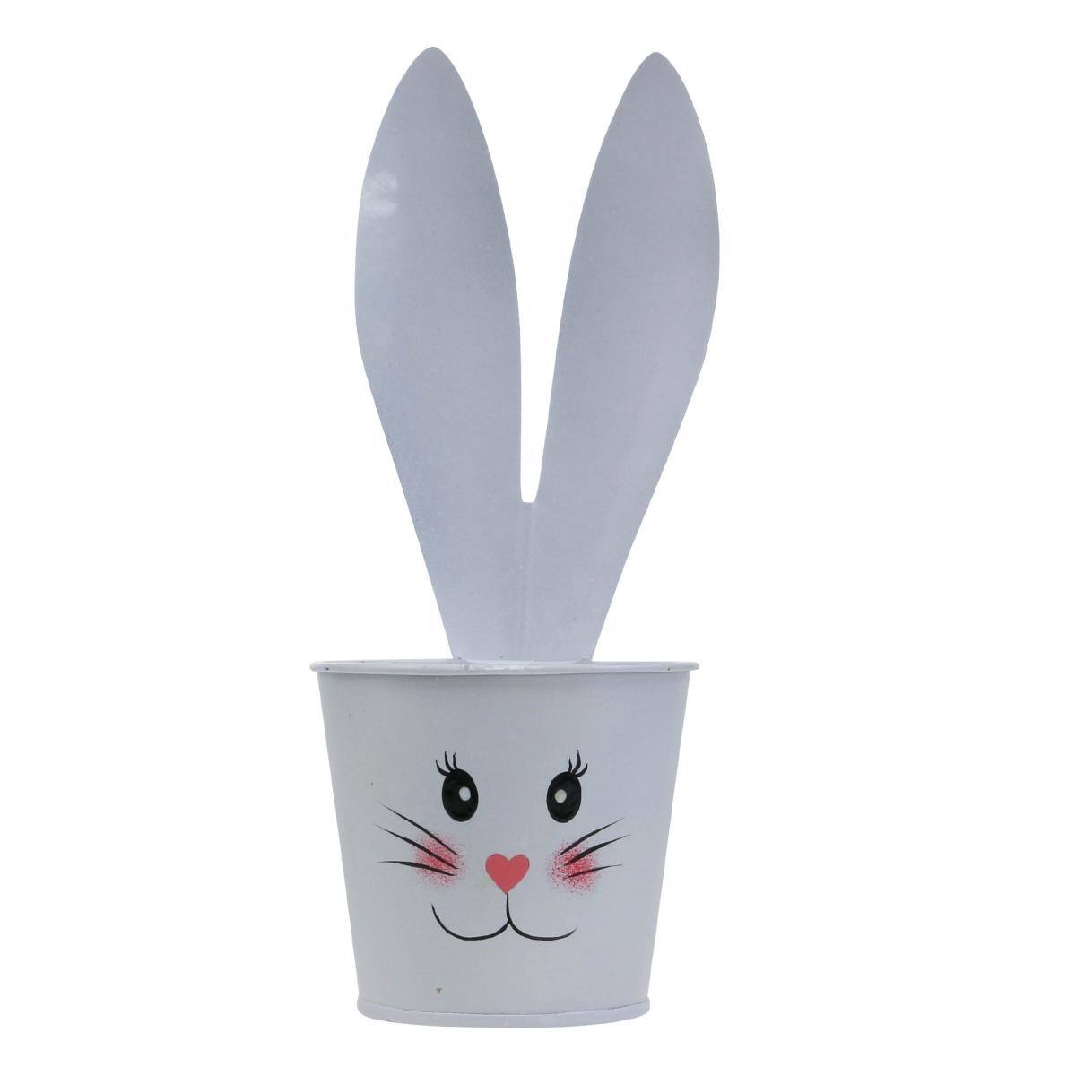 Flower pot rabbit planter metal white Easter decoration Ø8cm H20.5cm 4pcs