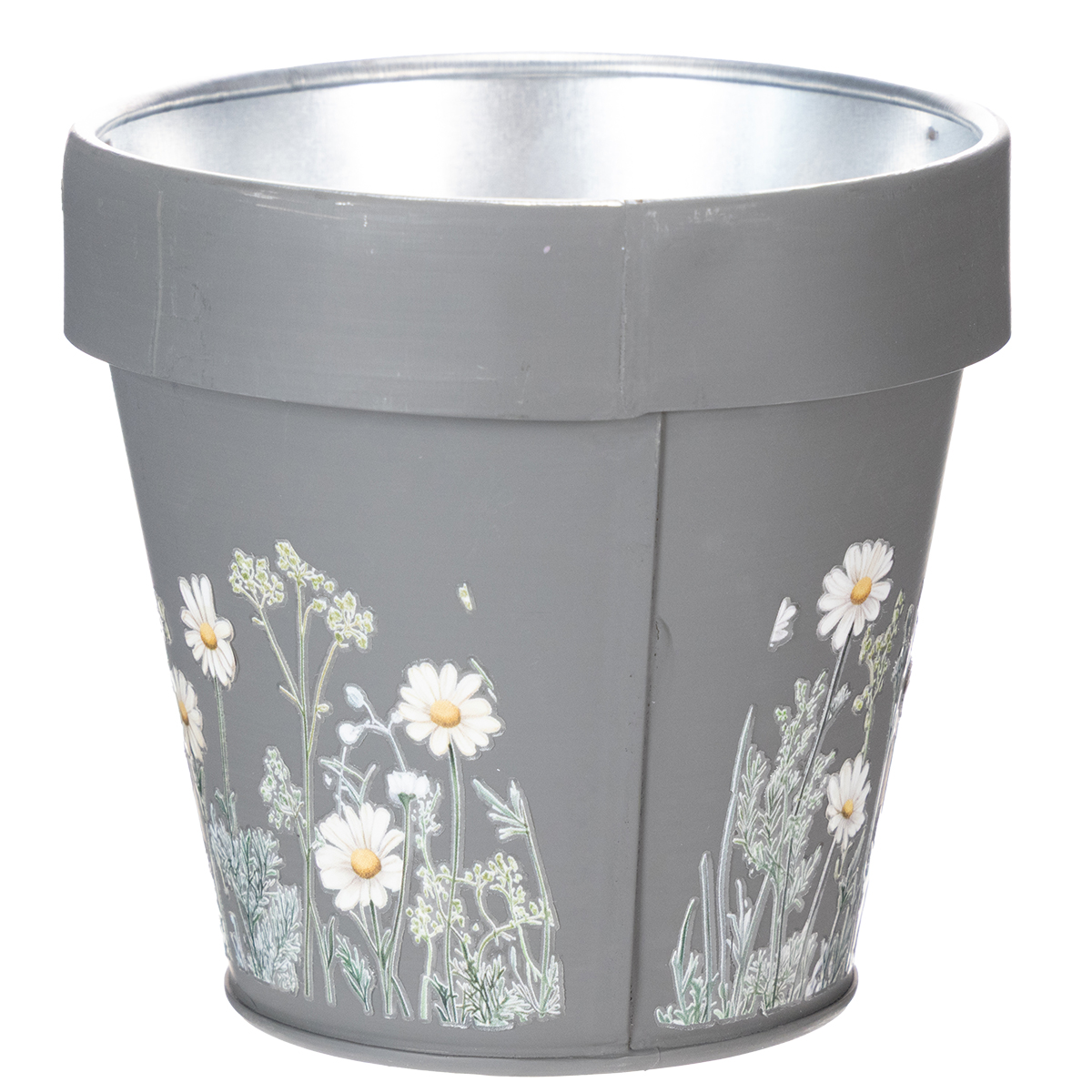 This decorative flower pot with a daisy motif will bring a breath of fresh air to your interior design. Whether on the windowsill, a living room shelf, or a desk – its subtle gray design blends harmoniously into any setting. The charming floral motif adds a touch of nature and joie de vivre to any room. Four pots in a set – so you can create several inviting oases. Practical and lightweight, made of sturdy metal, this flower pot is not only beautiful but also surprisingly versatile. A small highlight that combines style and functionality!