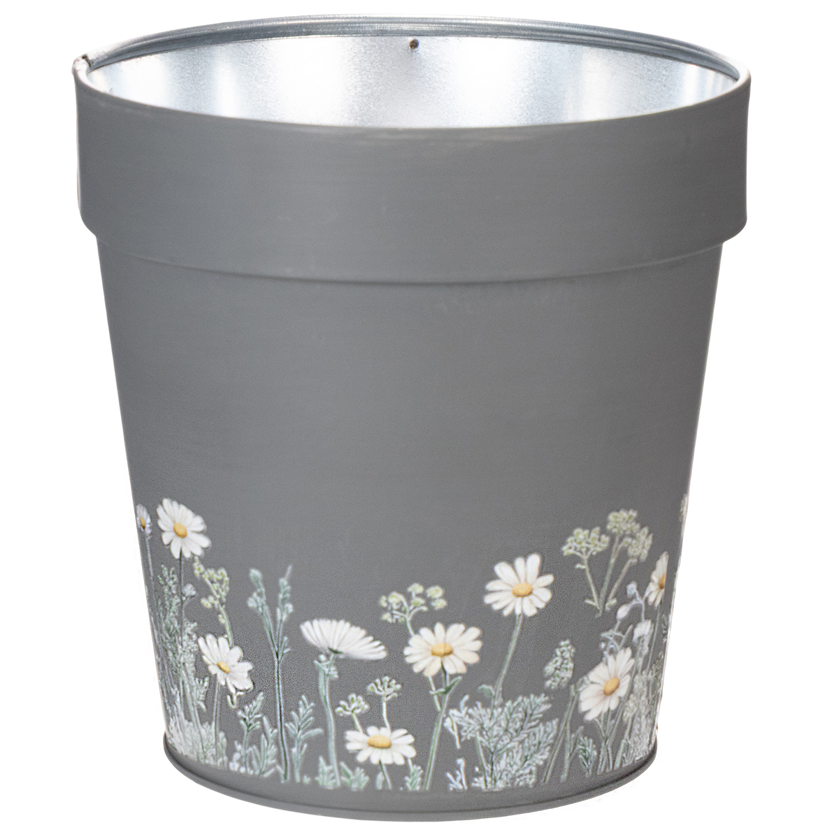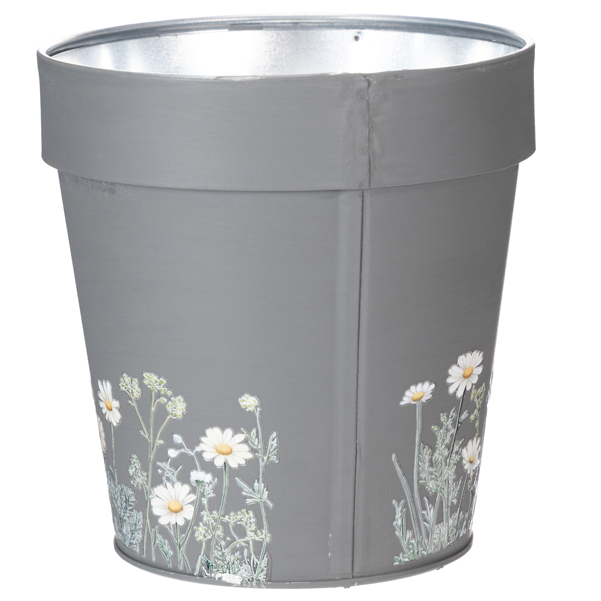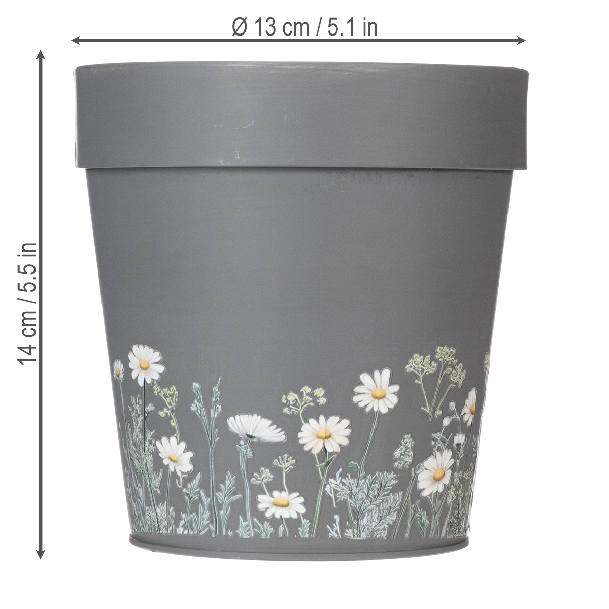 The floral design of this elegant grey flower pot lends a clean, modern touch to any setting. Inspired by Scandinavian interior design, this planter impresses with a wonderful blend of simplicity and attention to detail. The charming floral prints are timeless and create a harmonious look with your interior. Made of robust yet lightweight metal, the flower pot is durable; however, complete rust resistance cannot be guaranteed when used outdoors or in contact with water.