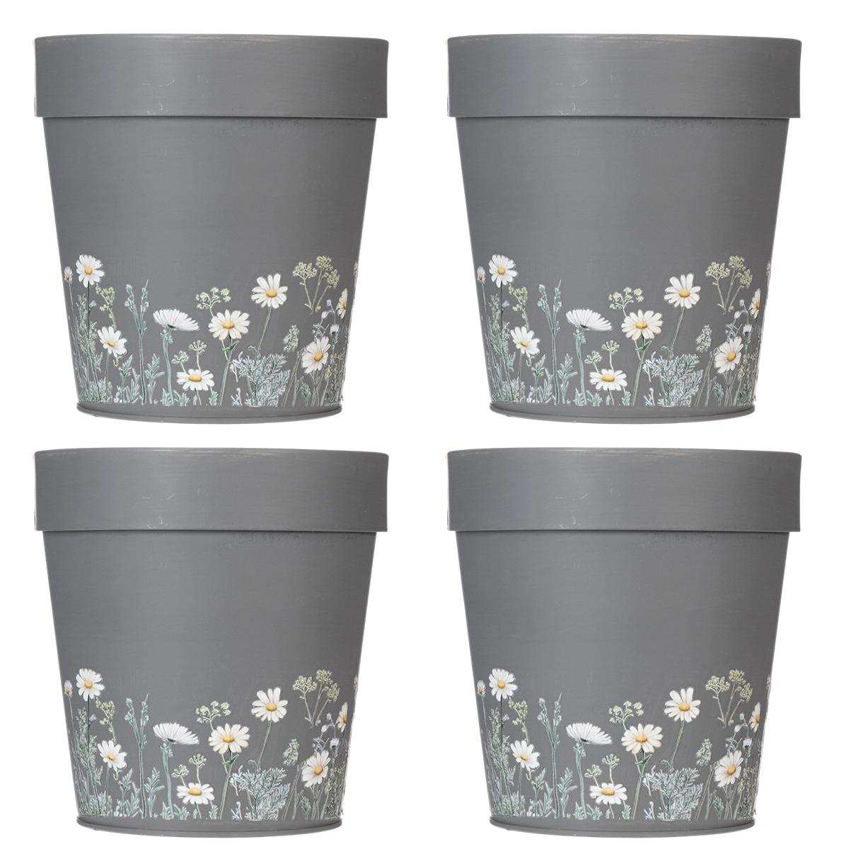 Measuring 14 cm in height and 13 cm in diameter, this pot is ideal for small plants such as succulents, mini orchids, and seasonal flower arrangements. It also makes a great herb pot for the windowsill. Practical, easy to care for, and visually appealing, this grey flower pot with a floral pattern creates a beautiful contrast with green or colorful plants. The set of four pots also allows you to create a harmonious look in several rooms of your home or to provide suitable homes for different plants.