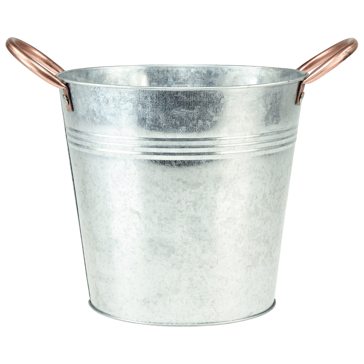 The copper-colored handles of this small metal bucket create an exciting visual contrast to the silver-colored decorative bucket. The galvanized surface even gives the planter a slightly nostalgic look. Before planting, it is advisable to line the metal container with foil to ensure the bucket is protected from corrosion.