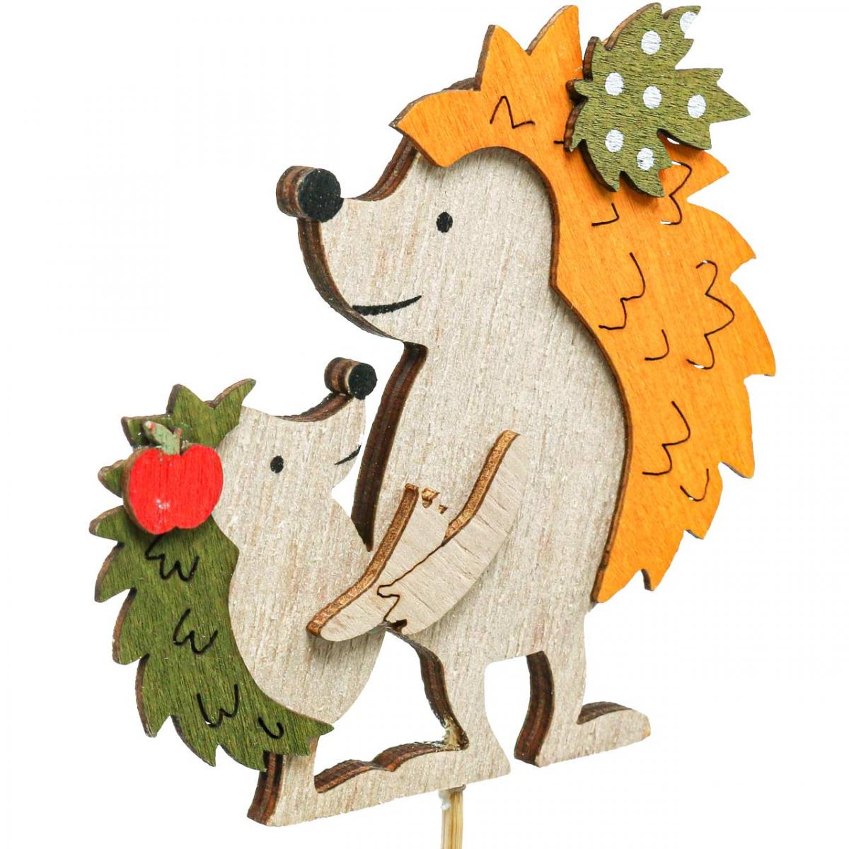 Flower stick hedgehog with child autumn decoration wood 8.5cm 8 pcs