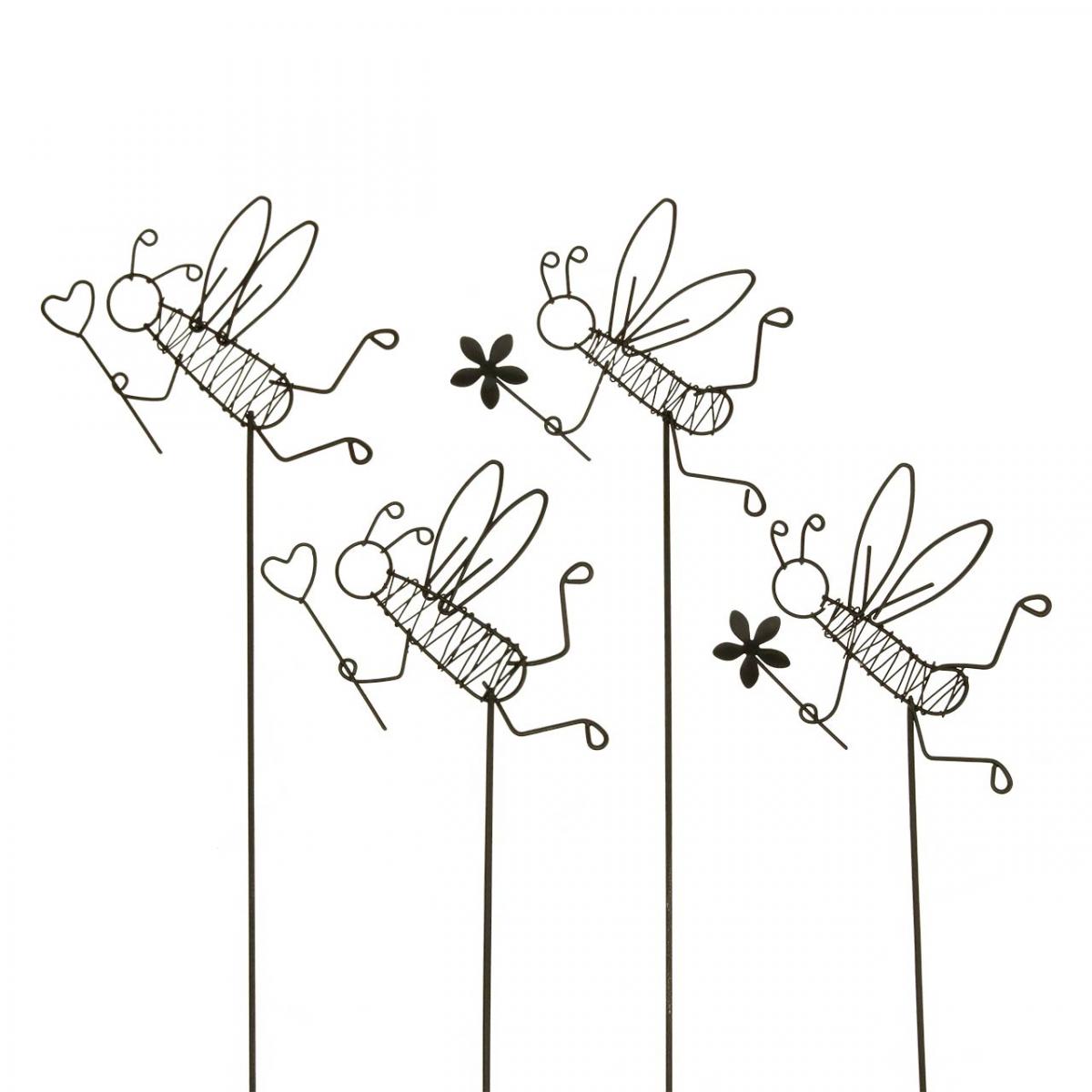 Flower Stick Metal Bees Decoration Black 8.5cm 4 Pcs