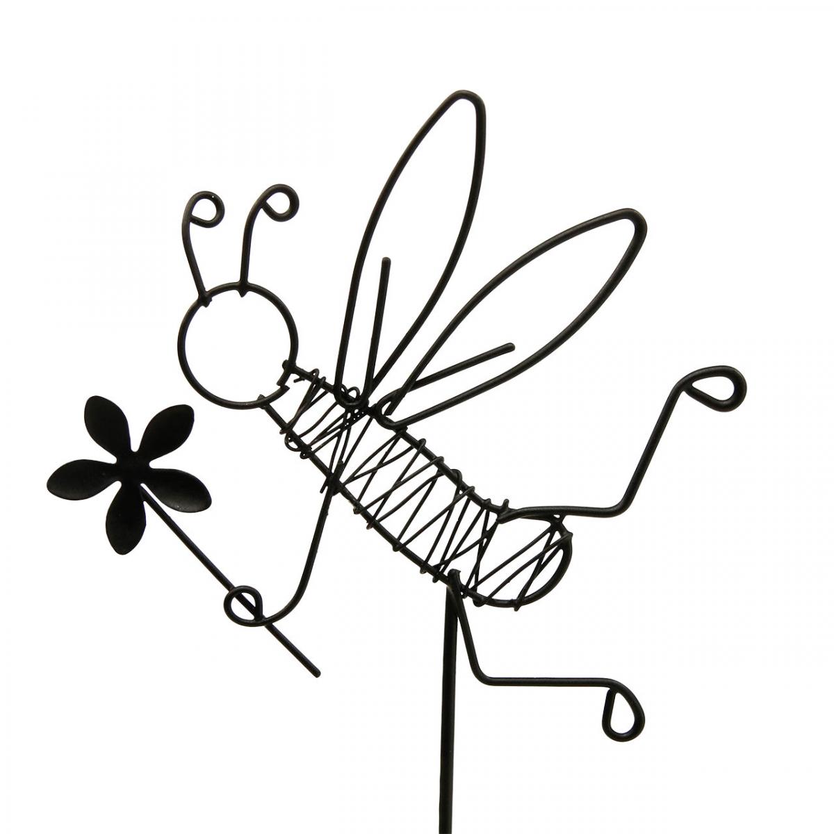 The busy insects are shown as silhouettes on the black metal flower studs. The arrangement and winding of the metal wire creates many small cut-outs that add nice details to the summer decoration.