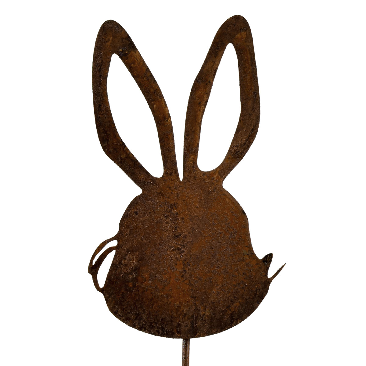 The Easter decoration in patina presents itself as a rabbit's head. In addition to the long ears, the side recesses on the side of the metal decoration are particularly original and are reminiscent of the cute whiskers of rabbits. The ears stand straight up, as if it were a very curious rabbit.