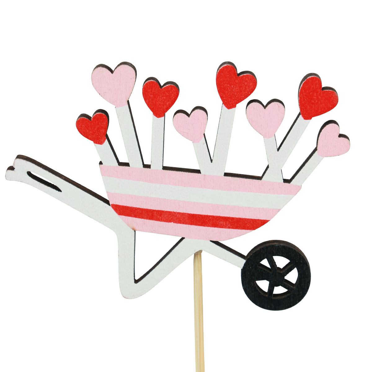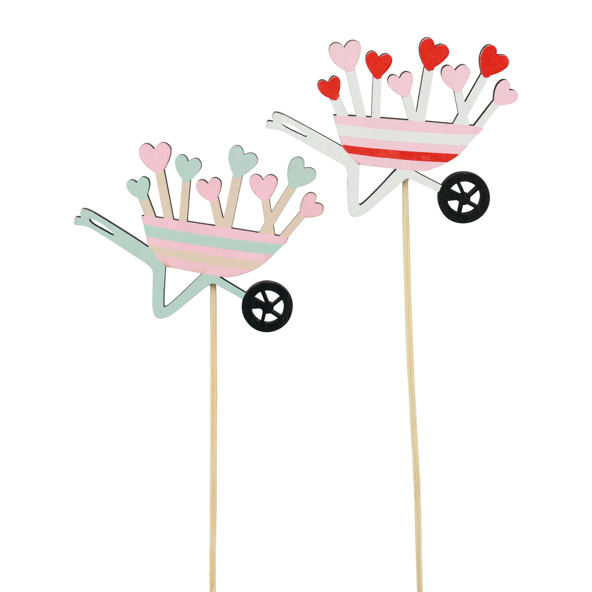 Product name: Flower Stick Wheelbarrow Wooden Hearts Colored 9x6.5cm 12 Pcs