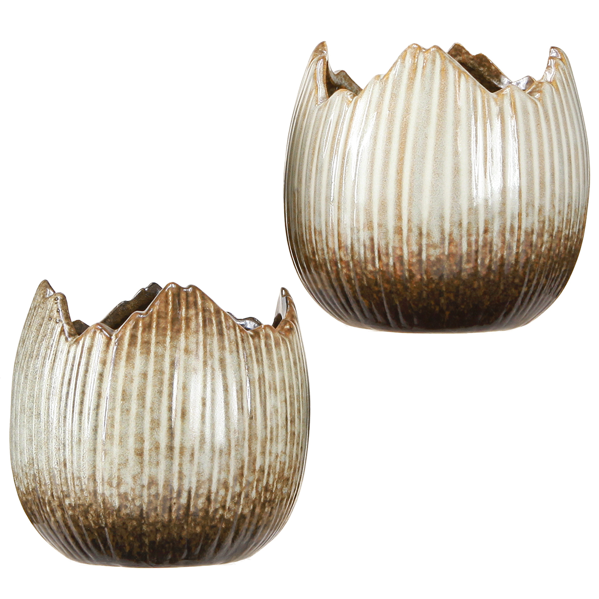 Flowerpot Ceramic Egg Broken Cream Brown Ø11.5cm 2 pcs