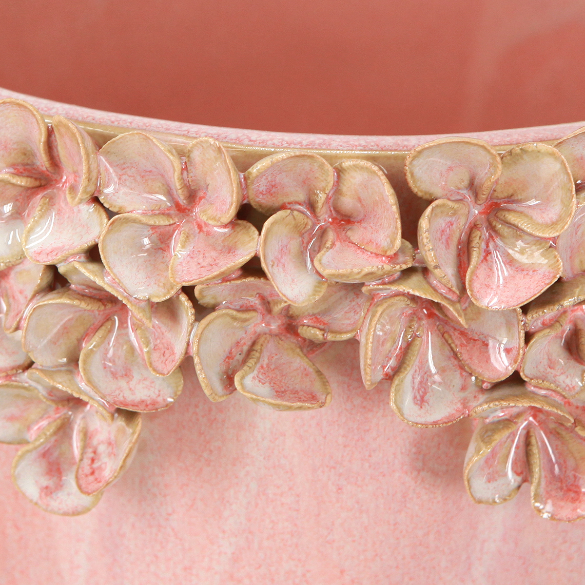 Flowerpot Ceramic with Flower Décor Pink Ø19cm H16.5cm