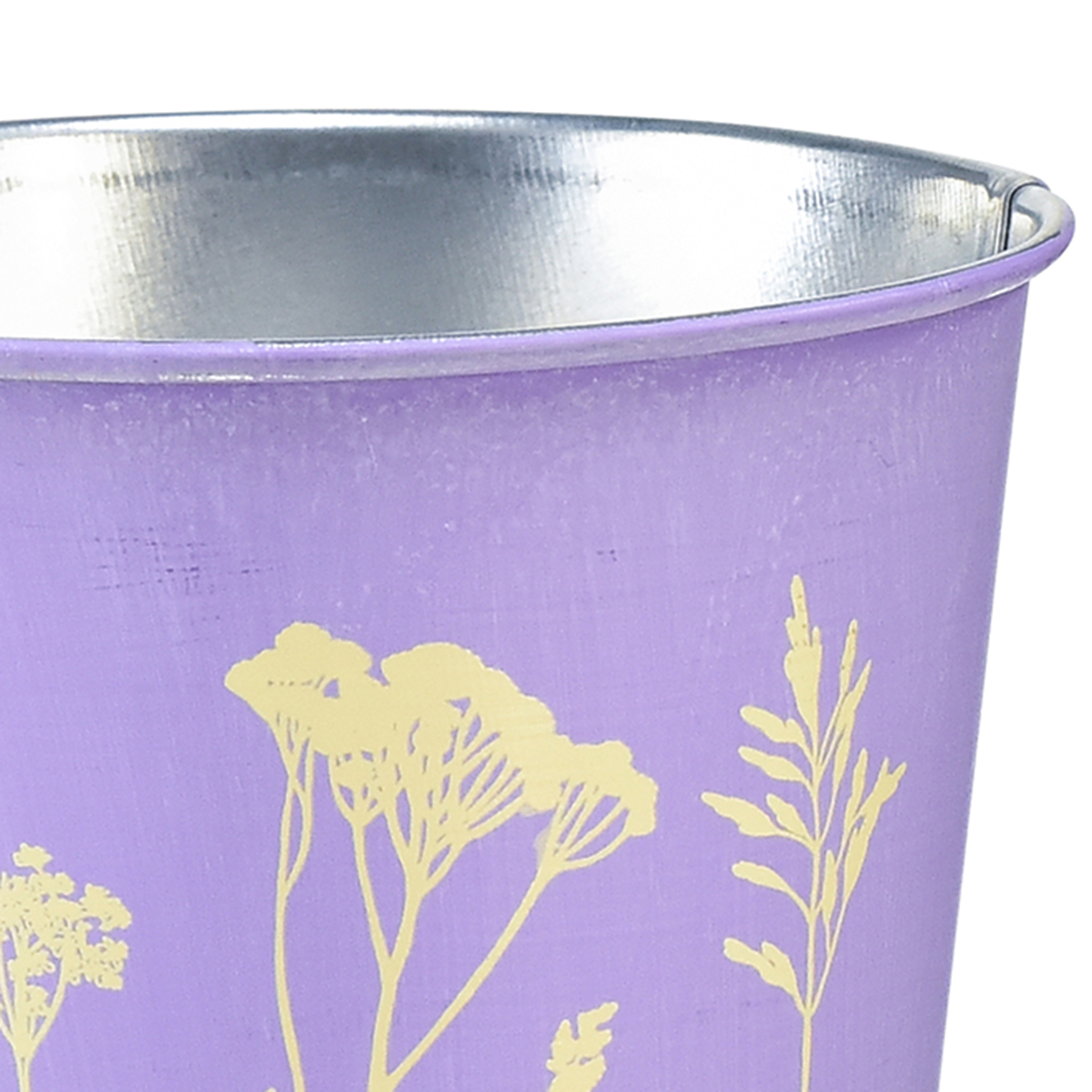 Flowerpot metal planter purple flowers Ø10cm H10.5cm