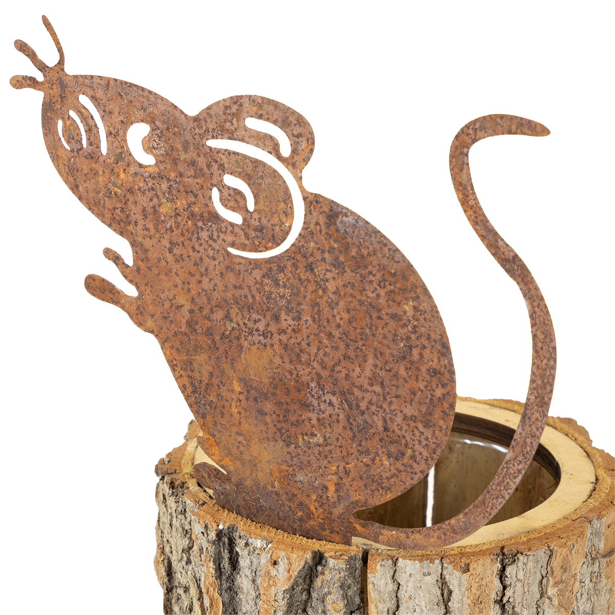 Product name: Flowerpot wooden planter bark and mouse rust H24cm