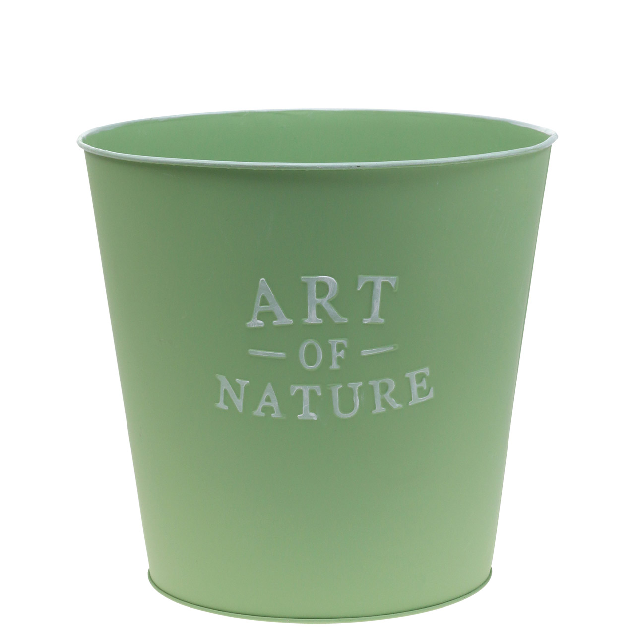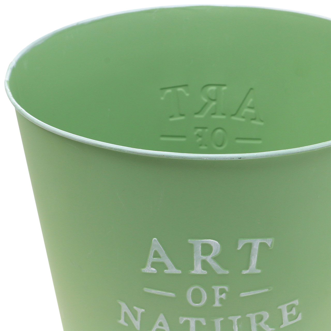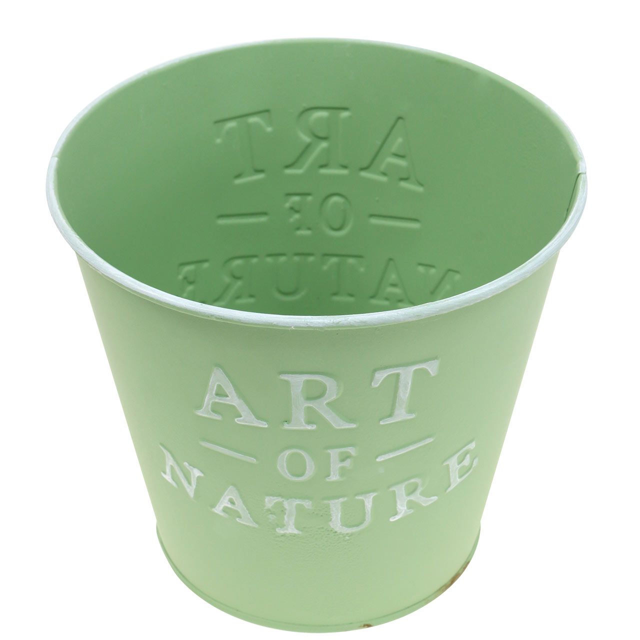 - Mint green zinc flowerpot with decorative lettering: Art of Nature