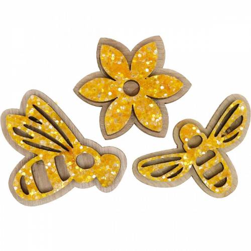 Flowers and bees to scatter orange wooden scatter decoration spring 36 pcs