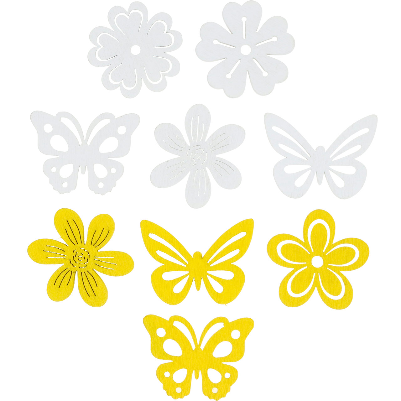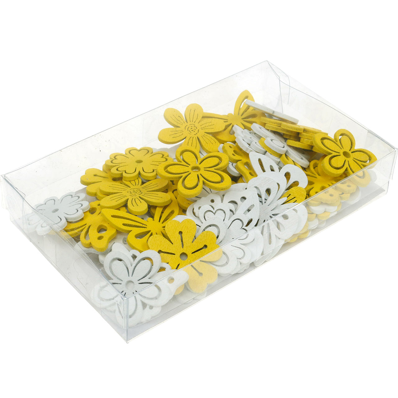 Flowers and butterflies for scattering yellow, white wooden scatter decoration spring decoration 72 pcs