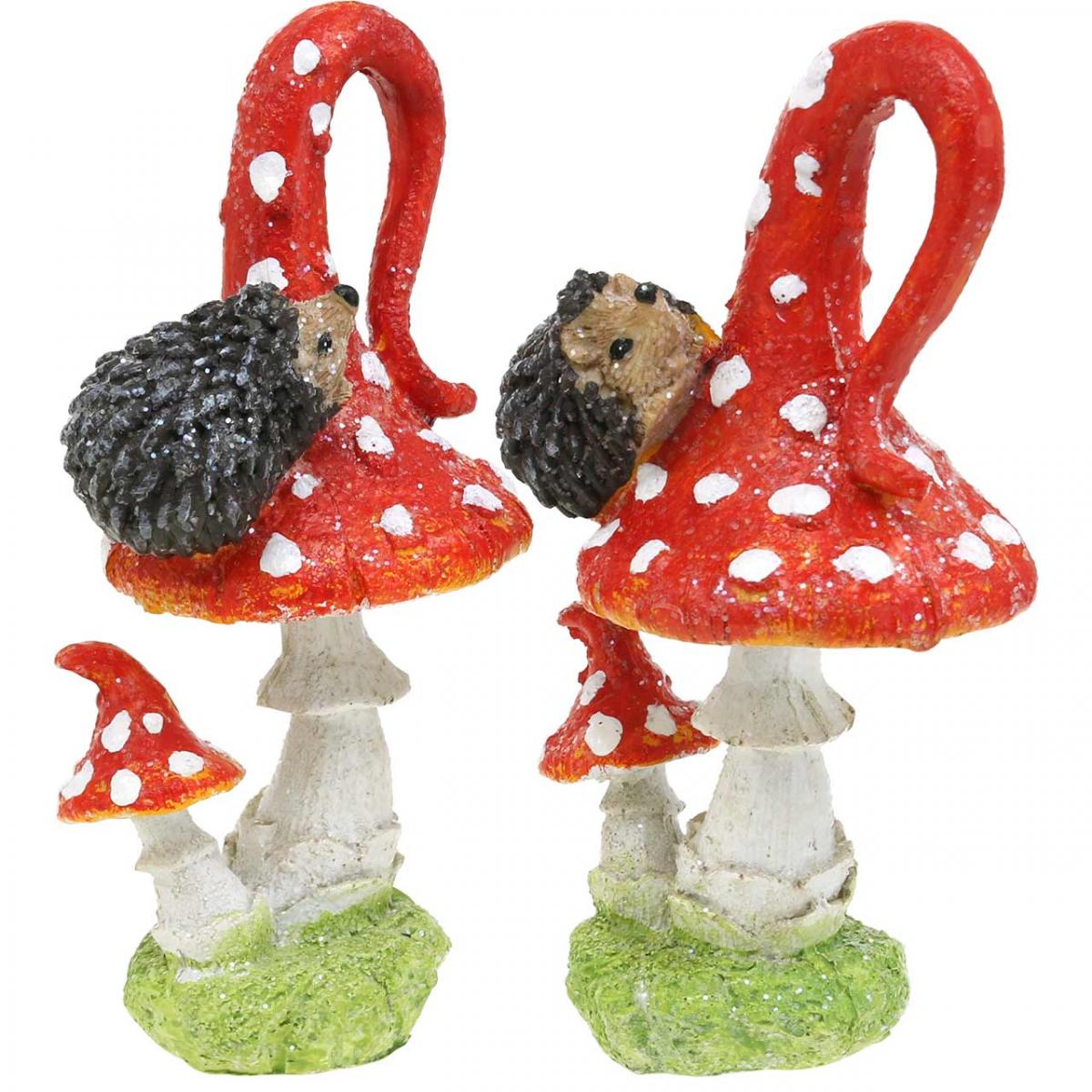 Fly agaric with hedgehog decoration mushroom autumn decoration H14cm 2pcs