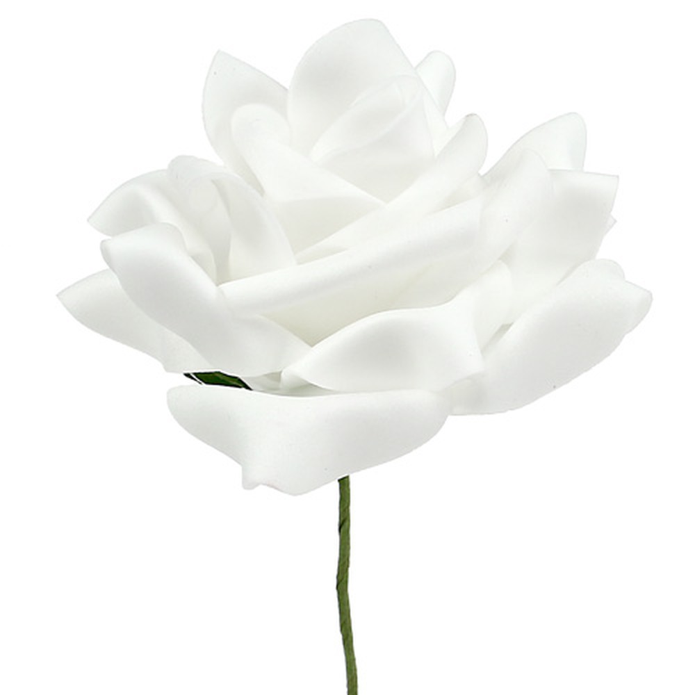 The total length of the foam roses in white with wire is around 27 centimeters, with the diameter of the flower heads around 10 cm. The approximately 8 cm large flower heads of the 8-pack also fit wonderfully in May hearts and bouquets for May 1st.