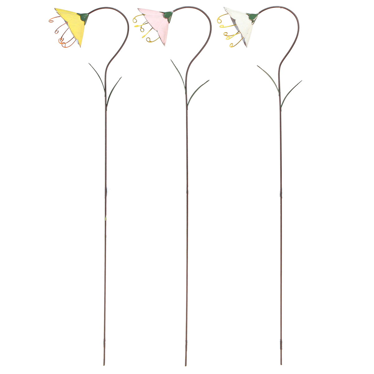 Garden Stake Flower Metal Flowers Yellow Pink White 49cm 3 Pcs