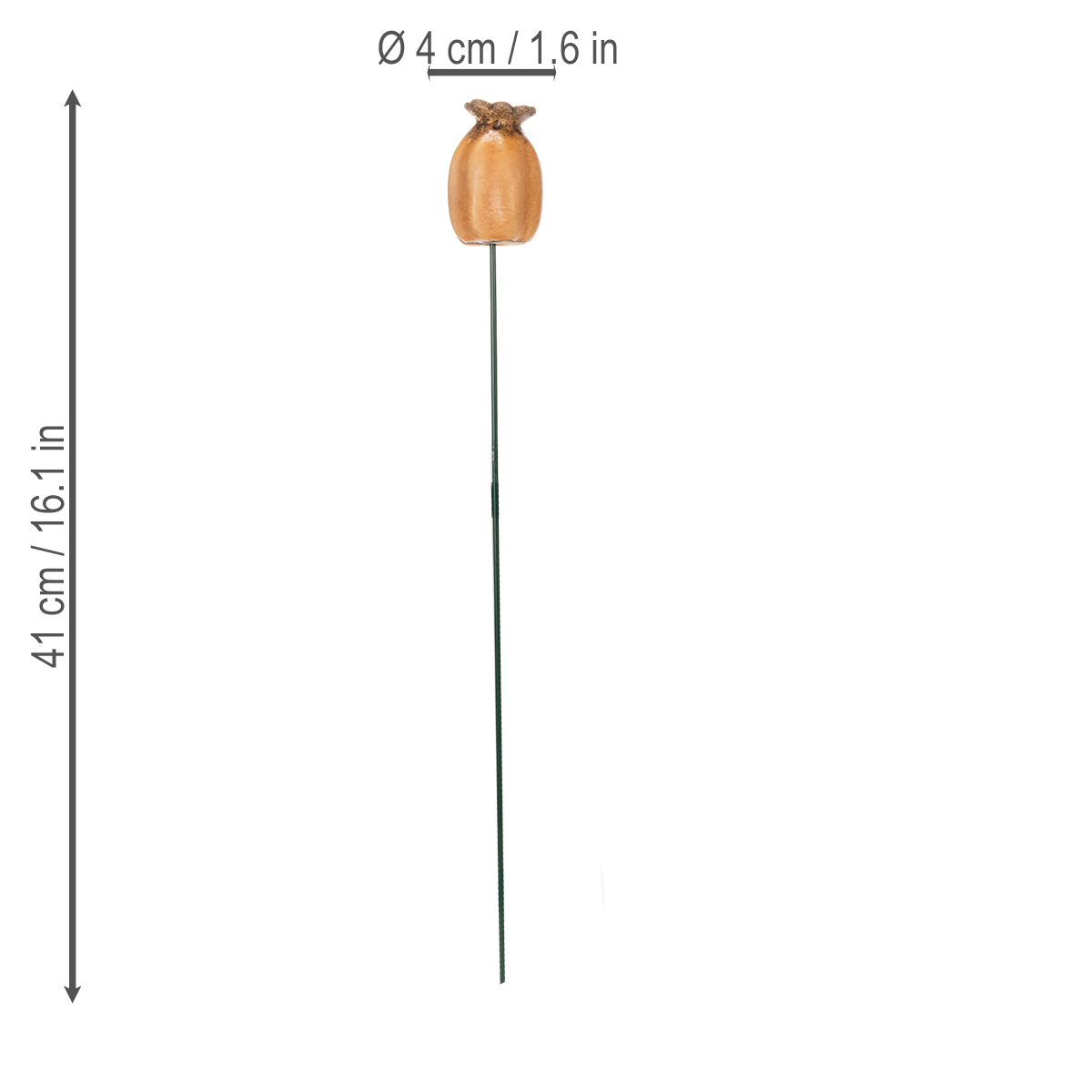 Garden stake poppy seed pod - decorative highlight for garden decoration and DIY projects - 41cm, 4 pieces