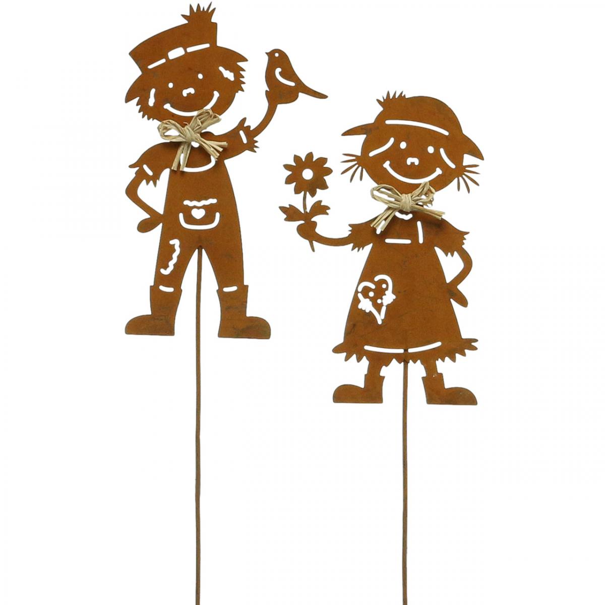 Product name: Garden stake rust look garden decoration girl and boy 4pcs