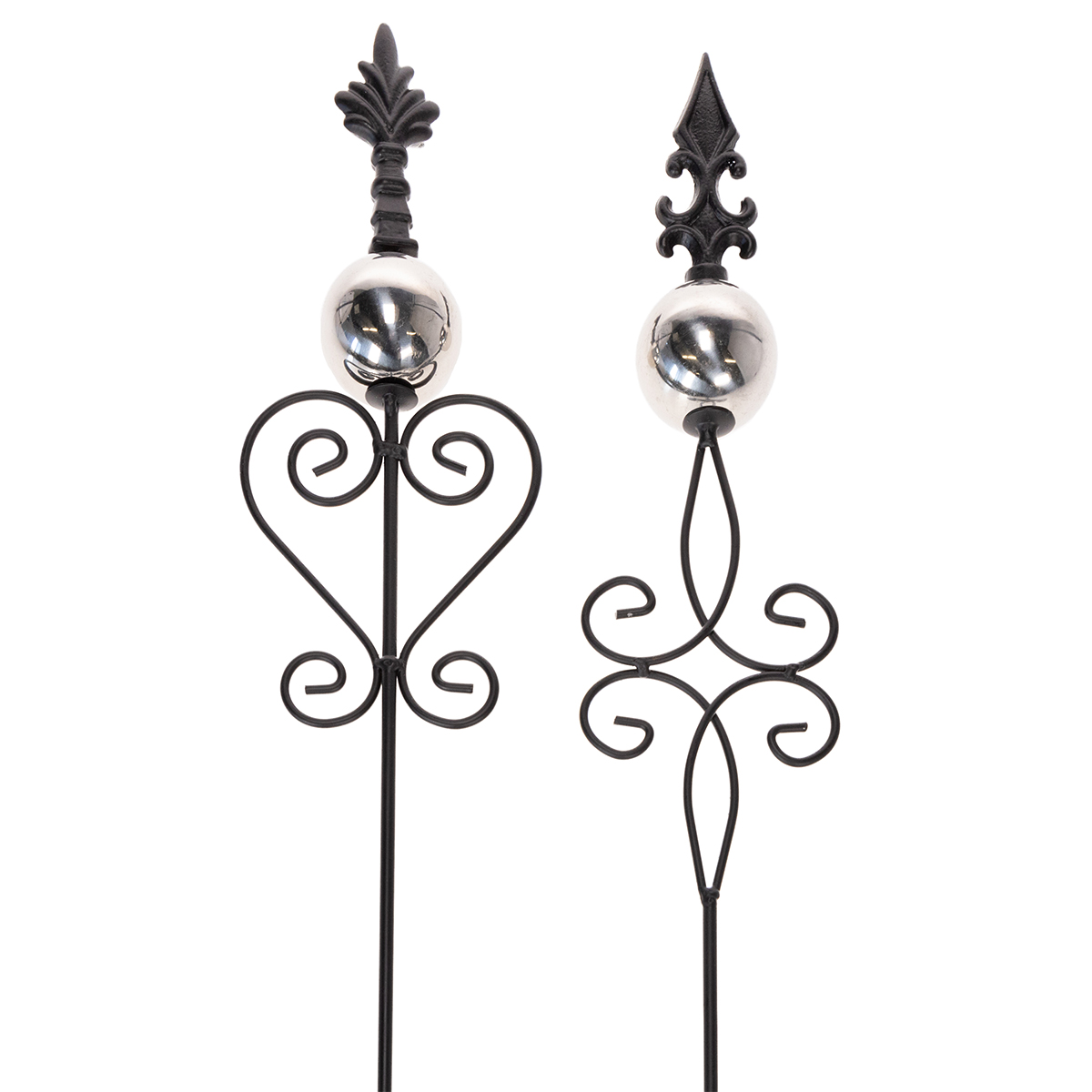 Garden stake with ornate design, decorative shape and stylish metal ball, 90cm, 2 pieces