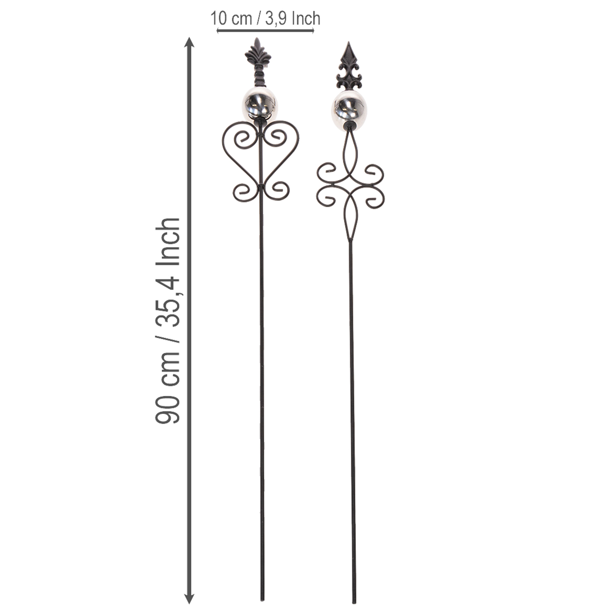 Product name: Garden stake with ornate design, decorative shape and stylish metal ball, 90cm, 2 pieces